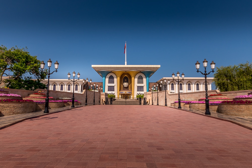The ceremonial palace of Sultan Qaboos (he prefers to reside in his seaside palace near Seeb) is closed to the public, but its tree-lined avenue and blue and gold mushroom pillared façade make it worth a visit.
